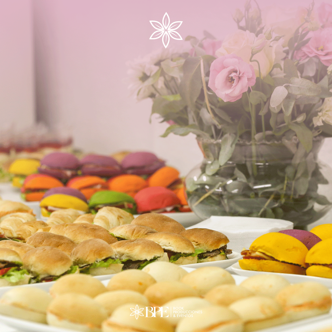 • 40 Pancitos de colores queso crema, carpaccio de salmón y espinaca.
